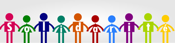 En langage des signes, l'adjectif "SOLIDAIRE" consiste à former une chaine avec les pouces et les indexs comme illustré dans la vidéo ci-dessus.